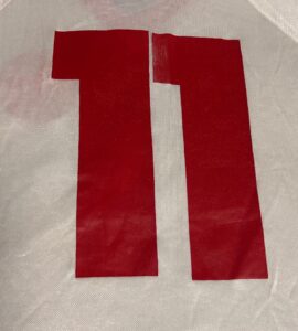 Sul retro troviamo il numero 11 termo-applicato alla maglia in vernicetta rossa. Tra i due “1” c’è un leggero spazio bianco che si intravede bene nelle fotografie di campo.