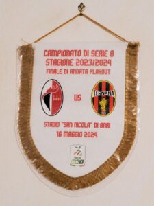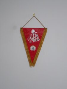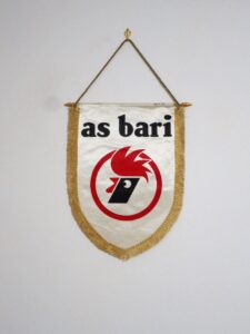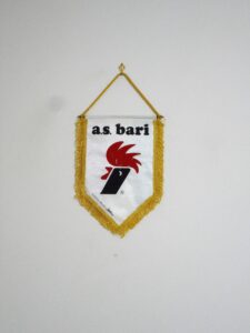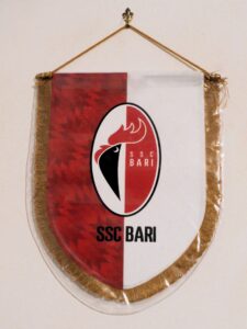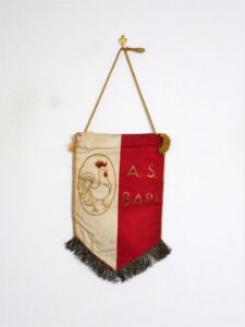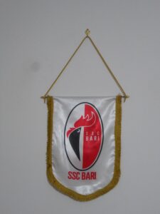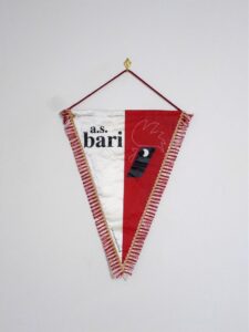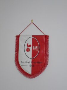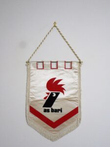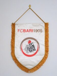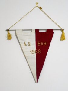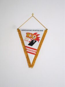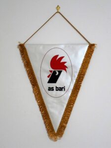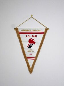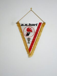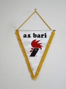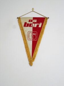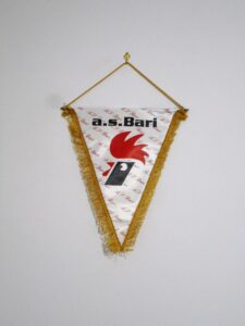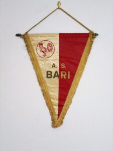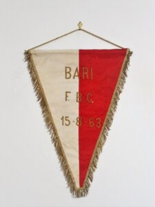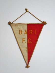 Il primo esempio è un superbo gagliardetto ricamato risalente all’incontro di campionato disputato, nel 1946, tra la squadra pugliese e l’Inter.