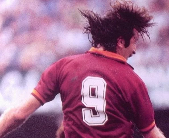 Non solo, sempre in questa stagione inaugura una nuova esultanza. È il 16 Marzo 1986, all’Olimpico scende la Juventus in uno stadio “infiocchettato” di giallo e rosso. Al 29′, con la Roma già in vantaggio per 1 – 0, il Bomber segna di testa il raddoppio: la gioia è incontenibile e per la troppa frenesia, ma anche per evitare l’abbraccio dell’accorrente Nela, scivola ….poi si rialza e mentre s’invola verso la Sud si sfila la maglia e la agita come una bandiera. E’ la prima volta, come anche lui rivendica, che un giocatore esulta in quel modo.