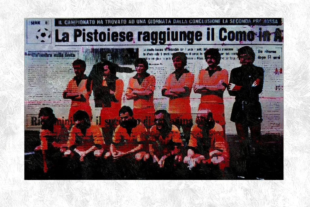 «Pistoia 94.000 abitanti, città di piante ornamentali e stabilimenti Breda diventa calcisticamente importante dopo ben 51 anni dall’ultimo campionato nella massima, campionato datato 1928 – 1929, nell’ultima stagione a due gironi e poi solo crisi irreversibili, anonimato, football da cortile, quasi mezzo secolo di inutili speranze. Nell’estate del 1974 Marcello Melani, il presidente più superstizioso d’Italia, con tre chiodi in tasca come portafortuna e pochi quattrini a disposizione, prese la squadra in serie D. I tre chiodi consumati dalla prodigiosa escalation di sei anni, sono riapparsi nelle sue mani, ieri sera alle diciannove, allorché la Pistoiese ha avuto la matematica certezza della promozione, dopo novanta minuti di tacito patto di non aggressione con il Lecce, egualmente interessato a spartire la posta della sua permanenza in B […]. No, la festa approntata dai rioni Leon d’Oro, Cervo Bianco, Grifone e Drago non poteva essere rovinata da nessun atto di insubordinazione, da nessun brutto scherzo della squadra di Mazzia, disposta al tango e alla melina lungo l’estensione del terreno […].