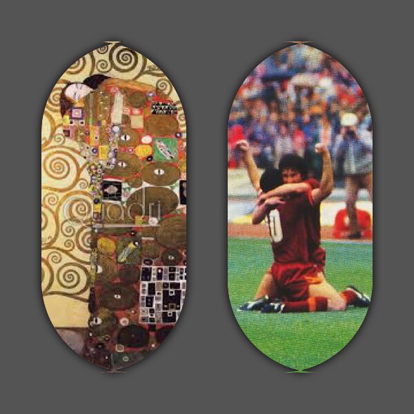 Quando Klimt dipinse il suo abbraccio si ispirò a tutto ciò era in grado di riproporre per esperienza di vita vissuta. Siamo certi che se avesse visto quello che per noi romanisti è l’Abbraccio lo avrebbe fatto sicuramente diverso. Lo avrebbe colorato di Giallo e di Rosso e i due protagonisti avrebbero la maglia della Roma.