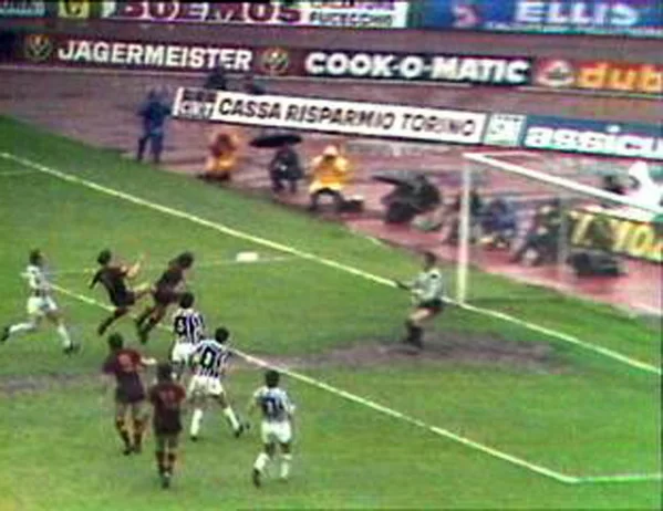 La Roma è in superiorità numerica. È spinta dal suo pubblico che ora ci crede come non mai. Al 74’ succede ciò che viene ancora oggi tramandato come un’ingiustizia, un furto. Bruno Conti scodella al centro, Pruzzo gioca di sponda e colpisce la palla cercando di servire probabilmente Falcao. Invece, come una furia, interviene in corsa dalle retrovie Ramon Turone. Tuffo, colpo di testa e palla in rete. I quindicimila urlano di gioia. Falcao è a terra, travolto proprio dall’irruenza del difensore giallorosso che nel frattempo si è rialzato ed urla con tutto ciò che ha in gola. A questo punto il guardalinee, tal Soncini, alza la bandierina: fuorigioco! Ma di chi? Di Pruzzo, di Falcao, di Turone. Immagini viste e riviste centinaia di volte. Misurate, analizzate, studiate e rimandate avanti e indietro. Ora con la moviola, ora con il telebeam. Verità, o presunte tali, dichiarate anche trent’anni dopo. Versioni ritrattate e manipolate. Tutto ciò consegna alla mitologia classica un episodio che contrassegna in maniera incontrovertibile la nascita dell’antagonismo e rivalità tra la Juventus e la Roma. Un episodio che viene tramandato di generazione in generazione con lo scopo di spiegare una rivalità nata da un torto subito. Il tutto con poche parole che racchiudono l’essenza della “guerra dei mondi”: Er go de Turone!