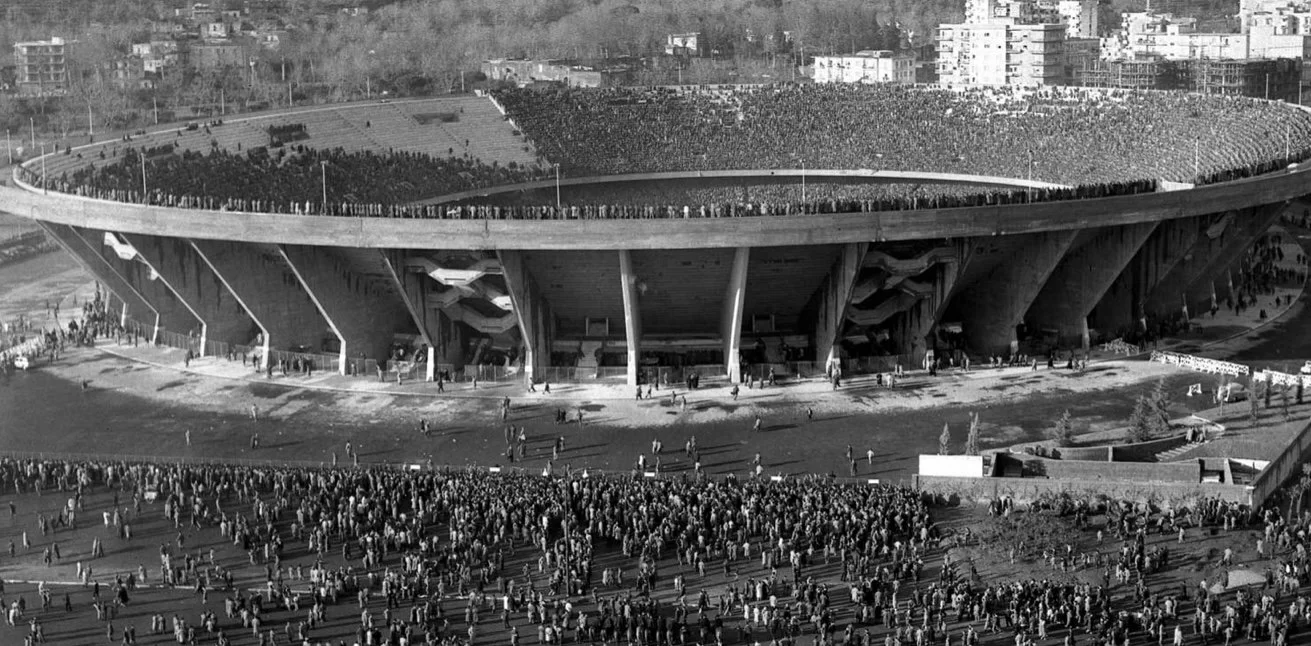 Costruito durante il boom economico ed edilizio che contraddistingue questo periodo della recente storia italiana, viene realizzato interamente in cemento armato su progetto dell’ingegnere Luigi Corradi e dell’architetto Carlo Cocchia. La prima pietra viene posata il 27 aprile 1952 in presenza dell’allora premier Alcide De Gasperi. I lavori terminano nel 1959 e quando l’impianto viene consegnato al comune di Napoli è in grado di ospitare 87.500 spettatori: lo stadio più capiente d’Italia fino ai Mondiali del 1990, quando la sua capacità viene ridotta per lavori di ristrutturazione, ammodernamento e copertura. Inizialmente è chiamato ‘Stadio del Sole’, ma il vescovo di Pozzuoli chiede ed ottiene di ribattezzarlo ‘Stadio San Paolo’ in omaggio al santo venuto da Tarso che, giunto dal mare, avrebbe toccato terra proprio nella zona flegrea. I lavori realizzati per Italia ’90 hanno appesantito la struttura originale con una copertura in lega metallica e l’aggiunta di un terzo anello ben presto chiuso agli spettatori per motivi di stabilità. In realtà il principale motivo è legato alla struttura metallica che lo sostiene, poggiata sul suolo e ogni qualvolta le migliaia di persone che lo occupavano, saltavano o si muovevano all’unisono, si propagavano sul terreno vere e proprie onde sismiche che danneggiavano i palazzi nei dintorni dello stadio. Negli ultimi anni la capienza del San Paolo è stata di fatto ridimensionata a circa sessantamila spettatori, rendendolo l’attuale terzo impianto in Italia dopo il Meazza di Milano e l’Olimpico di Roma.