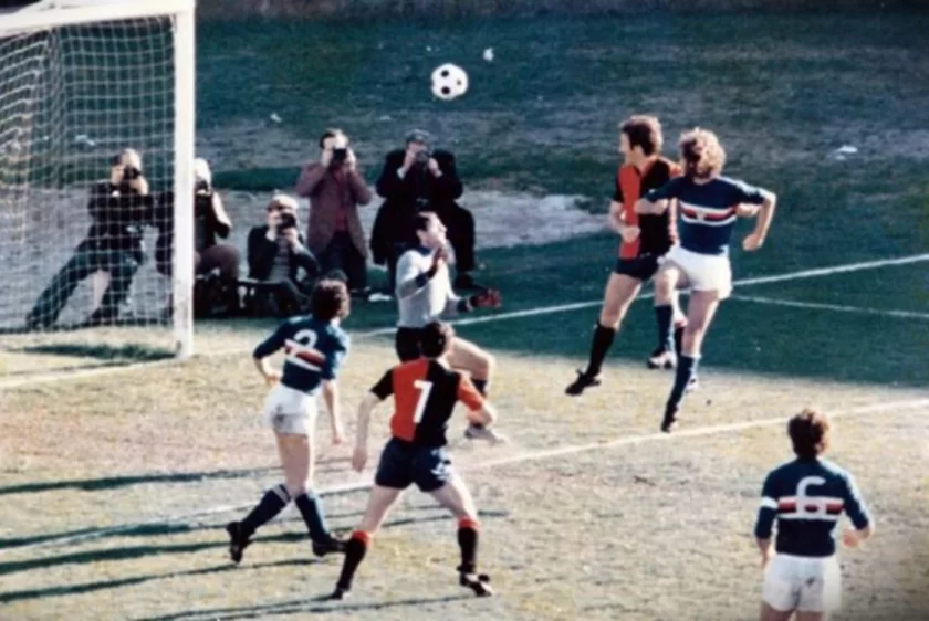Ma la “chicca delle chicche” di quell’anno è certamente il derby vinto per due reti a uno al ritorno. Le cose non iniziarono bene. Luciano Zecchini, lo stopper capellone della Sampdoria, in teoria avrebbe dovuto avere il suo da fare a marcare il nostro uomo migliore, “O Rey di Crocefieschi”. Invece, dopo pochi minuti, guadagnò una palla apparentemente innocua a centrocampo, avanzò indisturbato di una ventina di metri, verso la porta del Genoa ed indovinò il tiro dell’anno, facendoci un gol da una distanza notevole. La Sampdoria era in vantaggio uno a zero. Le cose si rimisero a posto quando, verso la fine del primo tempo pareggiammo con Oscar “Flipper” Damiani. Il secondo tempo fu invece una girandola di emozioni; con Pruzzo che prima si fa parare un rigore e poi ci fa vincere con uno splendido colpo di testa.