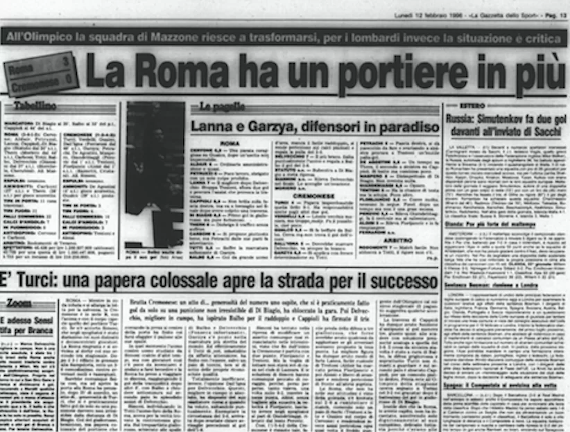 Stagione 1995-’96, l’ultima a Trigoria di Carletto Mazzone. La prima di Luigi Di Biagio, che l’11 febbraio di venticinque anni fa scriveva l’incipit del gol con la maglia della Roma. Era la quarta giornata del girone di ritorno e all’Olimpico di fronte alla Cremonese l’ex giocatore del Foggia apriĚ le marcature, con la complicità del portiere grigiorosso Turci. I capitolini vinsero 3-0 e il raddoppio portoĚ la firma di Abel Balbo, mentre il tris arrivò da Massimiliano Cappioli, fedele centrocampista del tecnico romano.