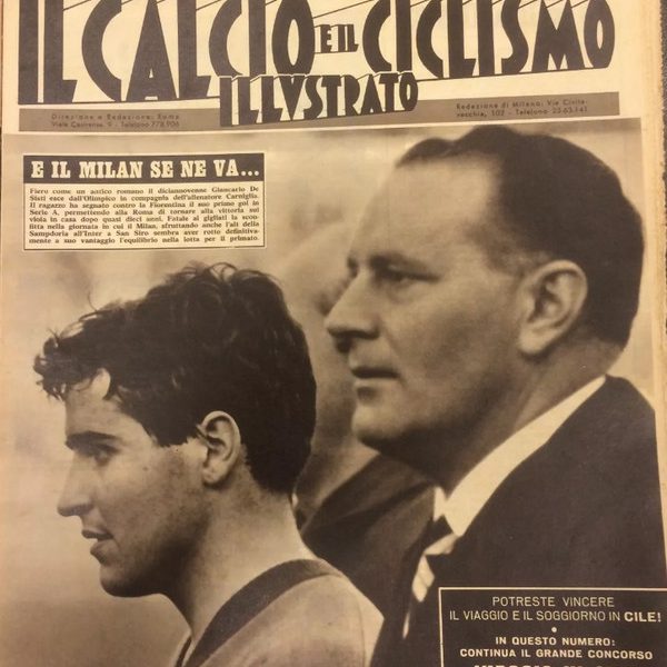 LAROMA24.IT (Federico Baranello) – “Fiero come un antico romano il diciannovenne Giancarlo De Sisti esce dall’Olimpico in compagnia dell’allenatore Carniglia. Il ragazzo ha segnato contro la Fiorentina il suo primo gol in Serie A, permettendo alla Roma di tornare alla vittoria sui viola in casa dopo quasi dieci anni”. Così la rivista “Il Calcio e il Ciclismo Illustrato”, del 18 marzo 1962, dedica la copertina al giovanissimo astro nascente De Sisti, dopo il primo gol in Serie A in Roma – Fiorentina dell’11 marzo 1962.