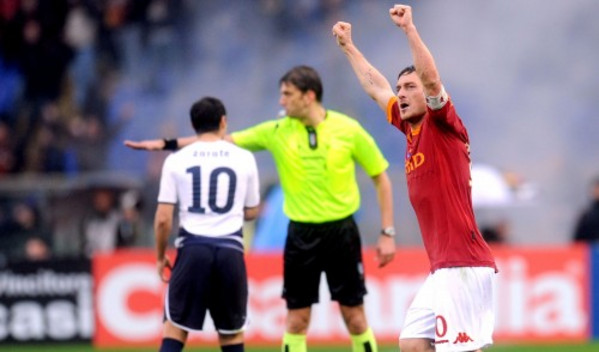 Al 12’ del secondo tempo il tecnico Vincenzo Montella sostituisce uno spento Menez per Taddei. Il transalpino non gradisce la sostituzione e lascia il campo con qualche mugugno. Al 69’, per un fallo su Pizarro al limite dell’area, viene concessa una punizione. Il Capitano s’incarica della battuta: forte botta con palla che si abbassa negli ultimi metri e la rete si gonfia. Forse un laser ha disturbato il portiere perché sono otto anni che Totti non segna ad un derby.