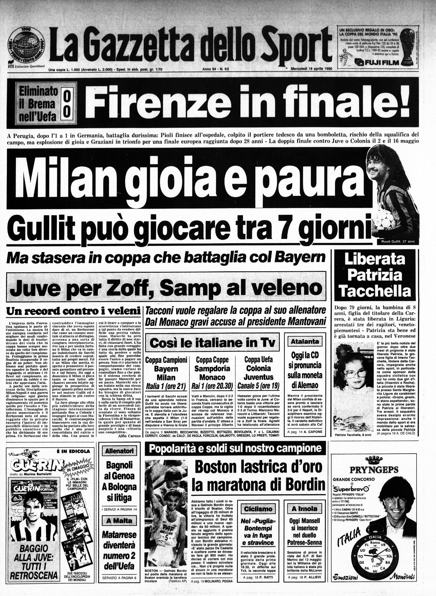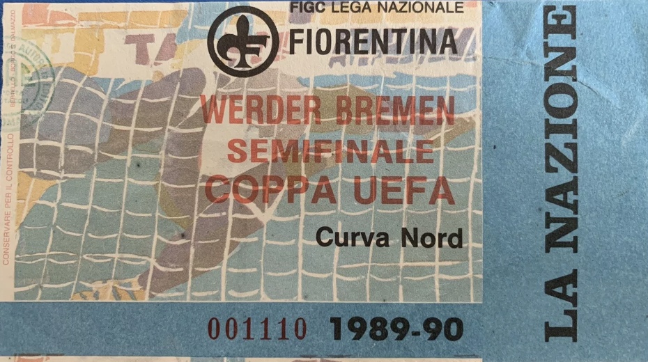 GLIEROIDELCALCIO.COM (Antonio Capotosto) – La prima squadra italiana a raggiungere l’ultimo atto della Coppa dei Campioni, la prima a conquistare la Coppa delle Coppe e il primo club a qualificarsi per la prima finale europea tutta tricolore. Scusate il gioco di parole: il 17 aprile 1990 la Viola pareggiava a Perugia (al Comunale di Firenze vi erano i lavori per il Mondiale) e attendeva l’altra semifinale tra Colonia e Juventus per conoscere l’avversaria alla quale avrebbe conteso la Coppa Uefa. In Umbria il match tra i gigliati e il Werder Brema terminò a reti inviolate e, grazie al gol siglato da Marco Nappi in Germania due settimane prima, la Fiorentina staccava il pass per la finale. Una squadra ‘bella di notte’, considerato che in campionato rischiava la retrocessione nella serie cadetta. Era l’ultima annata della famiglia Pontello alla guida del club, quella dell’esonero di Bruno Giorgi sostituito da Francesco Graziani. I tifosi gigliati di vecchia data ricordano la gara del Curi per la ‘foca’ di Nappi, il quale palleggiò di testa dalla propria area quasi fino alla metà campo. Una partita caratterizzata anche da incidenti: il portiere tedesco, ‘reo’ di aver tolto dalla rete una sciarpa della Viola, venne colpito alle spalle da una sirena da nebbia da due supporters e, complice un’invasione di campo (seppur festosa) prima del termine la Fiorentina venne condannata a giocare la finale in casa in campo neutro, ad almeno 300 chilometri dal capoluogo toscano (Avellino). Peccato, perché Roberto Baggio avrebbe meritato di giocare l’ultimo match in maglia gigliata tra le mura amiche. O meglio, non troppo lontano da Firenze.