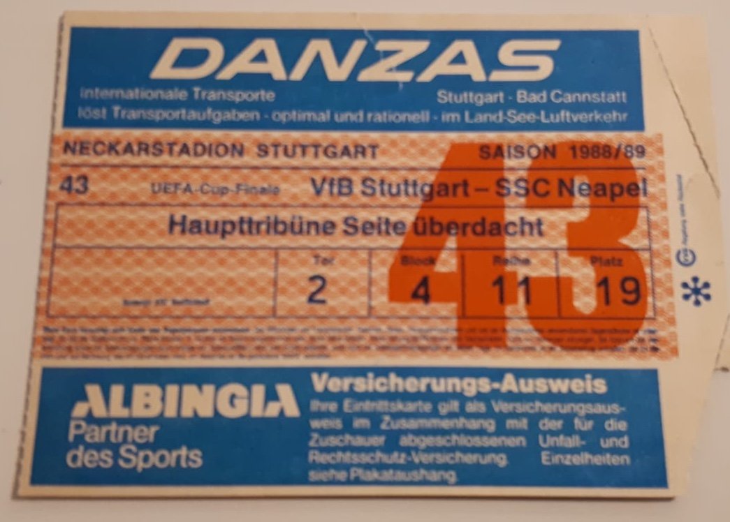 Si schiudono le porte del paradiso, il Napoli è in finale e trova lo Stoccarda, paradossalmente il meno quotato degli avversari fino a quel momento incontrati. È una finale tra matricole, infatti per i tedeschi, così come per il Napoli, si tratta della prima finale in una competizione europea. Una curiosità: tra le file della squadra tedesca, si destreggia un certo Maurizio Gaudino, papà del casertano e mamma del napoletano, tutti trapiantati in Germania. Al suo fianco, in attacco, giostra l’agguerritissimo Jurgen Kllinsmann destinato a diventare in seguito uno dei più forti centroavanti del mondo.