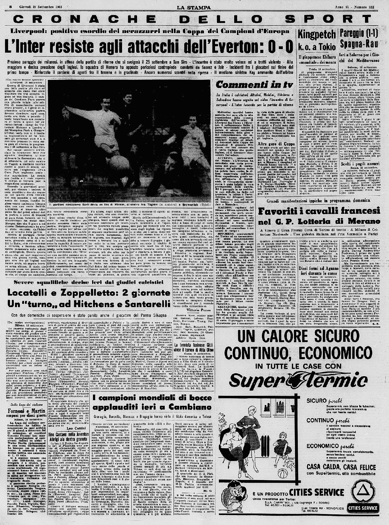 18 settembre 1963 – L’esordio dell’Inter in Coppa dei Campioni