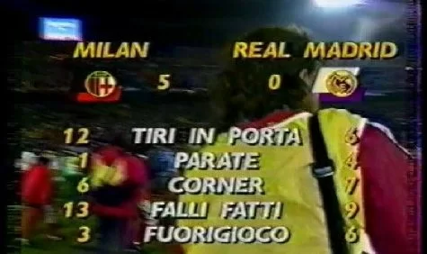 È 5-0, una partita impressionante dove il Milan sembra uno schiacciasassi ad una prova di forza. Il Real ne esce sovrastato, accerchiato, surclassato, affannato forse addirittura disperato e spaventato.