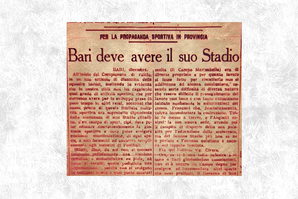 “Bari non deve essere seconda a nessuno, Bari deve avere il suo stadio; bisogna svegliarci da questo torpore in cui viviamo. […] A Bologna […] il Littoriale è già un fatto compiuto”.