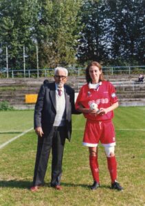 “No, no, mio papà non me l’avrebbe mai detto: è stato il giovanotto! E poi io, per vendetta … l’ho sposato! L’avvocato Levati aveva conosciuto all’università la figlia della signora Rocchi, la Patrizia, ed era andato per un certo periodo anche a fare il vice-allenatore del Gomma Gomma, interrompendo poi i suoi rapporti con la famiglia Rocchi. Aveva giocato, per altro, nel Pergocrema, in Serie D maschile; quindi, essendosi innamorato del calcio femminile, era venuto al Fiamma Ceraso a cercare qualcuno.”