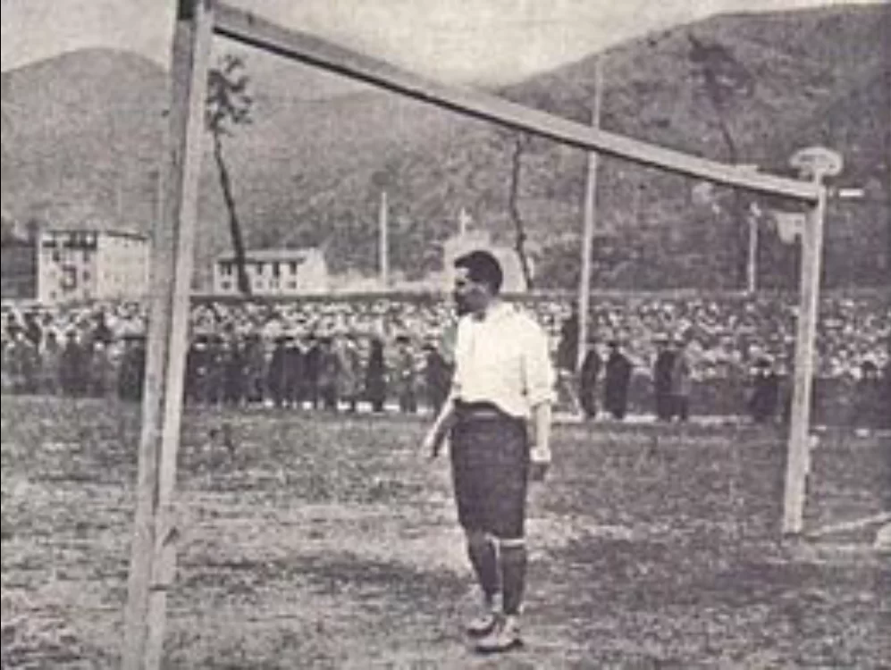 La foto di copertina ritrae James Spensley che difende la porta del Genoa nel campo sportivo di Ponte Carrega – Fonte Wikipedia