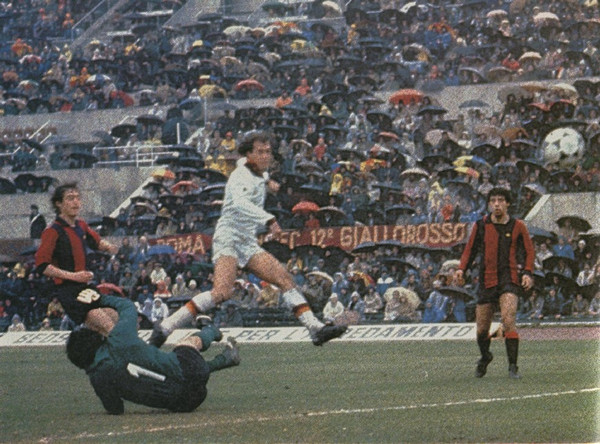In campionato però rimane a digiuno per molte giornate. Finalmente arriva il 22 febbraio 1981 quando all’Olimpico scende il Bologna. La squadra giallorossa è prima in classifica a 23 punti, seguita da Inter con 22 e Juventus da 21. In una sorta di “Complesso dell’Olimpico” non riesce a vincere in casa dal 21 Dicembre precedente (4-1 con l’Ascoli), pareggiando le tre partite successive tra le mura domestiche.