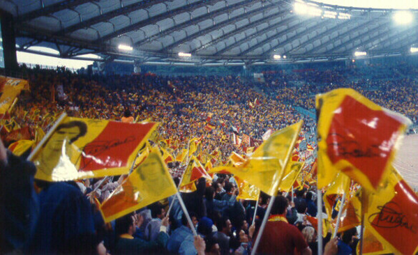 Sugli spalti ci sono oltre 80.000 tifosi giallorossi, tifosi di Bruno Conti. Fumogeni, bandierine, sciarpe: lo stadio è in piedi per accogliere e ringraziare i suoi campioni. I campioni d’Italia, chiamati uno ad uno, fanno il loro ingresso. In sottofondo l’inconfondibile “musichetta” dello spot della Barilla. Poi l’ingresso in campo del folletto di Nettuno e l’abbraccio di tutto il pubblico giallorosso.