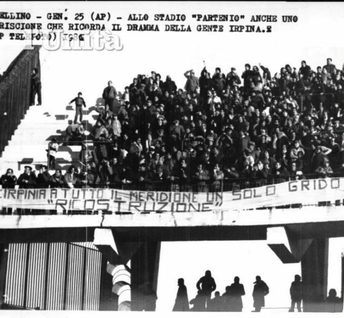 Il “Partenio” è stato per due mesi il “centro operativo militare” del periodo post terremoto. Si, di quel maledetto terremoto di quella maledetta domenica di quel maledetto novembre. Il 23 novembre per l’esattezza. I biancoverdi sono stati costretti a disputare partite casalinghe al «San Paolo» di Napoli, quelle con il Catanzaro e la Juventus. Ora lo stadio era stato sgombrato dalle roulotte e le tende utilizzate come sistemazioni di emergenza.