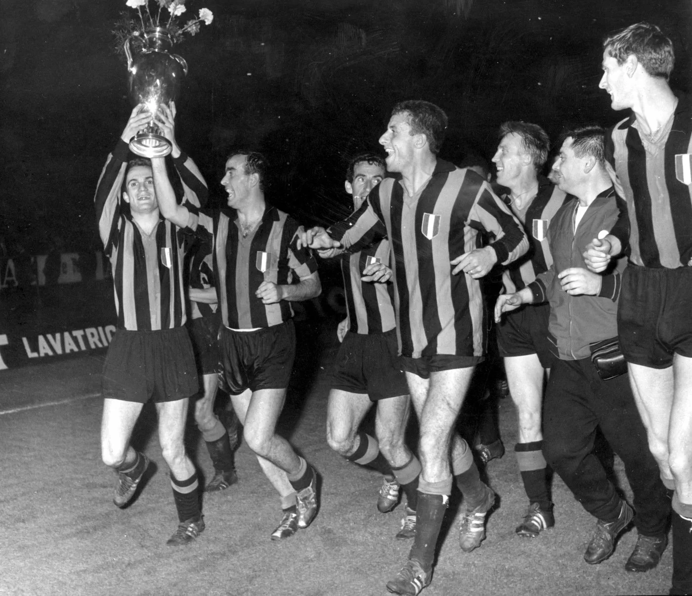 ©Publifoto/Lapresse 27-05-1964 Vienna, Austria Calcio Finale Coppa Campioni Real Madrid-Internazionale 3-1 Nella foto : SANDRO MAZZOLA e MARIOLINO CORSO alzano la coppa Campioni.
