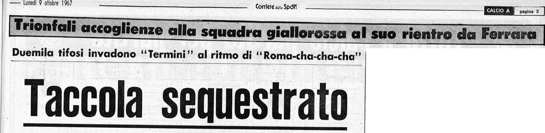 Il 22 dicembre 1968, nella partita Varese-Roma persa per 2-1, realizza il suo ultimo gol: “Taccola è apparso ancora una volta troppo solo all’attacco…Oggi si è anche mosso poco e male…” (Cit. Corriere dello Sport, 23 dicembre 1968). Nonostante ciò anche in questa occasione adempie al suo “dovere” di goleador.