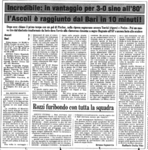 30 Agosto 1981: il Bari di Catuzzi segna 3 gol in 10 minuti contro l’Ascoli di Mazzone
