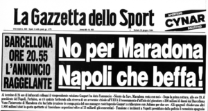 Giornate intense, ore calde e continui blitz nell’asse Napoli-Barcellona. L’obiettivo del club partenopeo è ben chiaro e definito: portare in Italia il fuoriclasse argentino a tutti i costi. Operazione non affatto semplice visto il braccio di ferro del Barcellona e quella dichiarazione del vicepresidente catalano Gaspart alla Gazzetta dello Sport del 30 giugno 1984: “Niente da fare, Maradona resta con noi”.
