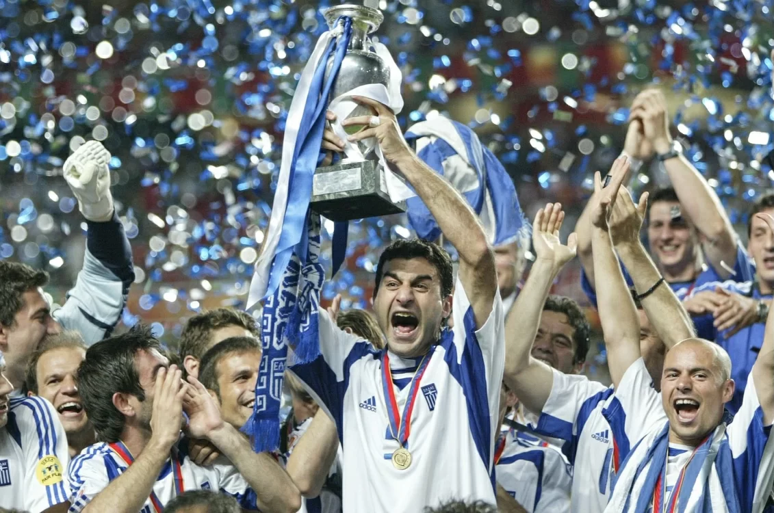 Dopo le prime otto presenze nelle quali riuscì a mettersi in mostra, tanto da attrarre l’attenzione della Roma, finì fuori rosa per disaccordi contrattuali col vulcanico presidente Luciano Gaucci e nell’estate del 2002 fu proprio la Roma di Franco Sensi, allenata da Fabio Capello a prelevarlo a costo zero. Soprannominato Ciclope dai tifosi giallorossi, non riuscì ad alzare alcun trofeo con la maglia della Roma. Ebbe nel Milan allenato dall’ex giallorosso Carlo Ancelotti, il club principale antagonista di quel periodo storico. Contro il Milan la sua Roma perse la doppia finale di coppa Italia nel 2003 e il duello per la conquista dello scudetto nel 2004, arrivando secondo proprio dietro i rossoneri, ma il 2004 fu il suo anno magico, l’anno che lo rese immortale e che consegnò la nazionale greca guidata dal tecnico tedesco Otto Rehhagel, contro ogni pronostico, alla storia del calcio, con la conquista del campionato europeo disputato in Portogallo. Il “Ciclope” fu determinante nella coriacea squadra sistemata in campo. L’allenatore tedesco riuscì a trarre il massimo da ogni suo giocatore e quella Grecia abbatté avversari ben più quotati, uno dopo l’altro. Arrivati secondi in un girone che comprendeva il Portogallo padrone di casa di Cristiano Ronaldo, Figo e Deco, la Spagna e la Russia, ottenendo l’unica vittoria all’esordio, proprio contro il Portogallo, come per un segno premonitore, i greci batterono poi la Francia nei quarti di finale e la Repubblica Ceca in semifinale, proprio con un gol di Traianos Dellas, per conquistare poi il trofeo proprio contro il Portogallo padrone di casa, con un colpo di testa di Angelos Charisteas. Un successo incredibile e inaspettato.