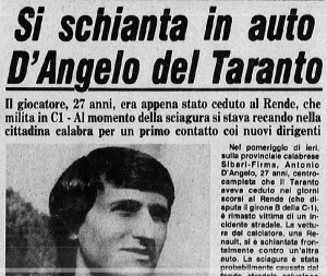 GLIEROIDELCALCIO.COM (Andrea Gioia) – E’ la mattina del 22 Ottobre del 1980 e i lettori dei principali quotidiani sportivi si svegliano con una triste notizia. Antonio D’Angelo, numero 10 del Taranto, ha perso la vita in un incidente stradale, due anni dopo il mito Jacovone. La Gazzetta dello Sport, in una prima pagina priva di troppi spunti, dedica un articolo in rilievo al talento pugliese: