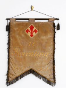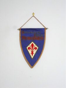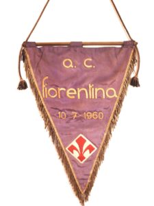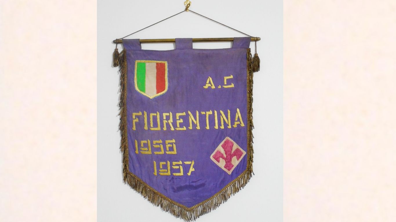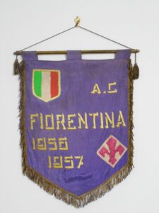 Nel dettaglio, nella stagione 1956 1957 vengono utilizzati gagliardetti che commemorano il titolo di Campione d’Italia conquistato nella stagione precedente e per tale motivo riportano, oltre al giglio fiorentino rosso, lo scudetto tricolore.