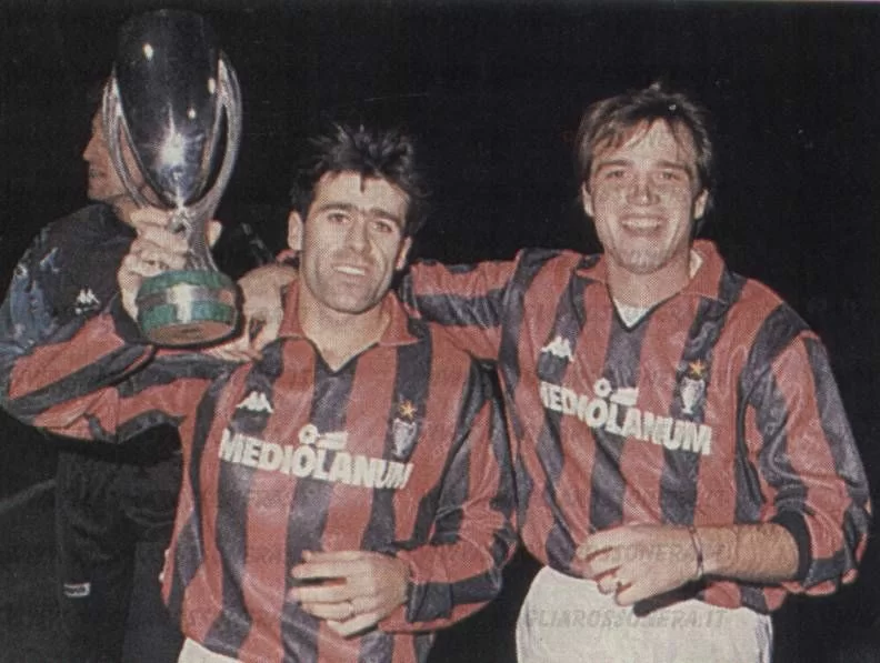 GLIEROIDELCALCIO.COM (Luca Negro) – Il 7 Dicembre 1989, nel giorno della festa patronale milanese, il Milan disputò a San Siro la finale di ritorno della Supercoppa Europea. Avversario il temuto Barcellona detentore della Coppa delle Coppe, allenato da Johan Cruijff, che un paio di settimane prima, precisamente il 23 novembre, davanti ai 55 mila spettatori del Camp Nou, stadio tanto caro ai colori rossoneri, aveva bloccato la corazzata allenata da Arrigo Sacchi sull’1-1: Van Basten su rigore e Amor. Il diavolo partì dunque, in quella sfida di ritorno, in una posizione di vantaggio. Tutto stava nel contenere i contropiedisti “azulgrana”, Beguiristain e Roberto, bloccare i rifornimenti per “El Torpe”, Julio Salinas, mostrando una particolare attenzione alle giocate di Jose Mari Bakero, giocatore capace di accendere la luce. Naturalmente obiettivo dei rossoneri, come in tutte le partite disputate nel periodo Sacchiano, imporre il proprio gioco agli avversari, sempre, in modo ossessivo, per quanto difficile, sempre e comunque provarci. In quella fredda e umida serata, lo stadio intitolato a Giuseppe Meazza, si mostrò con un pubblico di circa 52mila unità, corse ad assistere a quello che fu presentato come una sorta di derby della zona e del calcio totale. Un’orgia di pressing e tattica del fuorigioco che avrebbe preparato il Milan al meglio per la supersfida di Tokyo del 17 dello stesso mese, con un altro maestro di tattica e fanatico di quel tipo di calcio. Francisco Maturana e il suo Atletico Nacional de Medellin, campione del Sudamerica. Nella prima mezz’ora di gioco i rossoneri faticarono e molto a trovare spazi ma senza correre particolari rischi. La pericolosità del Barcellona si sintetizzò in una incursione di Soler, subentrato all’infortunato Roura, che chiamò all’uscita provvidenziale al limite dell’area di rigore del Milan l’attento Giovanni Galli. Poi la forza del centrocampo rossonero, con Rijkaard e Donadoni in cattedra, cominciò a produrre assist e tiri da lontano e quando anche il giovane Diego Fuser, prelevato in estate dal Torino, seminò un paio di avversari sulla destra, le sensazioni divennero più che positive. Seppur il primo tempo si chiuse sullo 0-0, il Milan sembrò in crescita costante e il Barcellona in crescente difficoltà. Le paure palesate da Sacchi alla vigilia del match, circa un possibile eccesso di fiducia dei suoi giocatori, in seguito alle 4 vittorie consecutive in campionato, decisamente non facile da ottenere nel calcio d’epoca, furono smentite sul campo. Vincere aiuta a vincere. E al rientro dagli spogliatoi i diavoli suonarono la carica, palesando però scarsa concretezza nella bellezza di qualche giocata e un tandem Van Basten-Massaro piuttosto evanescente e impreciso. Ma al 53° minuto una nuova serpentina di Donadoni, decisamente il più ispirato fra i suoi, provocò il fallo di Milla a circa 20 metri dalla porta difesa da Andoni Zubizarreta. In barriera nervi tesi, qualche gomitata. Eusebio, non rispettando la distanza, si prese un cartellino giallo dall’arbitro austriaco Kohl. Sul pallone da calciare Rijkaard, Donadoni e Alberigo Evani, per tutti “Chicco”, per qualcuno “Bubu”, come il piccolo amico dell’orso Yoghi. Zubizarreta sembrava oscurato dalla corposa presenza di uomini in barriera e disposti al limite dell’area di rigore. Tensione sempre più alta, come se nell’aria si avvertisse il momento decisivo, un momento che sarebbe rimasto scolpito nella storia di quella partita. Kohl fischiò, ma ancora una volta interruppe il gioco per fare rispettare la distanza della barriera, rimproverando i giocatori rei di scorrettezze. Poi finalmente, la regolarità stabilita, permise a Kohl di portare il fischietto alle labbra e fischiare il via alla ripresa del gioco. Mentre Rijkaard si defilò velocemente, Donadoni appoggiò il pallone ad Evani, che indossava quella maglia numero 10 orfana di Ruud Gullit. Il potente esterno sinistro di “Chicco” si andò a infilare imparabilmente nell’angolino in basso alla destra della porta difesa da Zubizarreta. Una meravigliosa prodezza balistica che lo consegnò alla storia, in quel dicembre 1989, per sempre, il mese di Evani. “Chicco”, per favore non chiamatelo “Bubu”, un nomignolo che proprio non gli piace, diede ad Arrigo Sacchi il quarto trofeo della sua gestione, in quel match, poi comodamente controllato senza correre rischi, fino alla fine. Ma soprattutto, quel potente tiro dalla distanza di Evani, permise al Milan di mettere in bacheca la prima Supercoppa Europea della storia del club rossonero. Il tutto, pochi giorni prima della partenza per Tokyo, dove Evani, sarebbe divenuto per tutti, l’eroe dei due mondi.