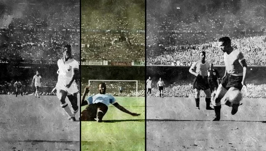 Albino Friaça Cardoso, detto Friaça ha appena siglato il primo gol della partita, quello della svolta, quello che può dare il via ad una vittoria in goleada dei tecnicamente superlativi brasiliani. Varela prende la palla dalla rete e va verso il guardalinee, inscenando una vera e propria contestazione che dura ben oltre i festeggiamenti verdeoro. Al pubblico poco importa se il gioco è stato fermato. La vittoria è annunciata.