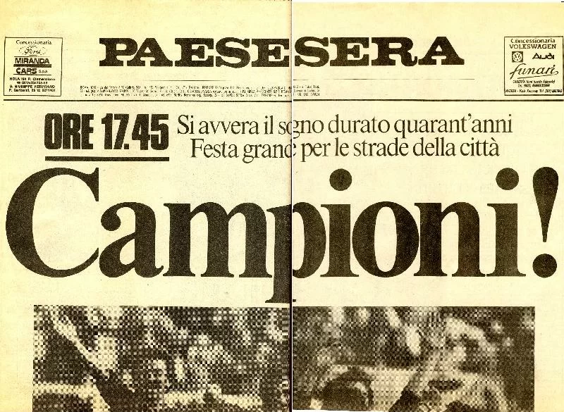 Una partita che non poteva avere un risultato diverso dal pareggio, necessario come il pane alle due squadre, per non retrocedere ad una e per elevarsi sul gradino più alto del podio all’altra. Dalle prime ore del mattino Genova e il Marassi vengono presi d’assalto dai tifosi giallorossi che arrivano nel capoluogo ligure con ogni mezzo e finiscono anche per mescolarsi con i tifosi di casa in nome di un gemellaggio da onorare e rispettare. Infatti prima della gara si rinnova l’amicizia tra le due tifoserie, che in questa giornata vedono entrambe la possibilità di coronare i loro sogni. Sogni così diversi e così uguali. Le speranze giallorosse, quelle di un sogno lungo quarantuno anni, raggiungono l’apice al 20’ del primo tempo quando Conti batte un calcio d’angolo, Martina respinge e Di Bartolomeis’impossessa della sfera. Controllo e pallone al centro per “Bomber” Pruzzo che si eleva dove solo lui può arrivare, e di testa colpisce la palla. All’impatto segue poi il disegno di una traiettoria unica, inimitabile. Perfetta. Palla in rete e apoteosi diventano un solo momento. La gioia giallorossa si contrappone alla paura rossoblù. Una paura che viene meno al 42’ quando Fiorini ristabilisce la parità e dona ossigeno al Grifone. Era scritto. Poteva finire solo così. Manca qualche minuto al triplice fischio finale, chi occupava gli spalti è ora dentro il campo, sulle linee di fondo, sulle linee laterali… “E’ un momento eccezionale, gentili ascoltatori…” commenta Enrico Ameri in diretta per Tutto il calcio minuto per minuto, la Radio-trasmissione più importante per tanti appassionati del gioco più bello del mondo, “che non abbiamo mai descritto nel corso di nessuna partita, di nessuna conclusione di nessun campionato di Serie A che abbiamo descritto in circa ventitré anni di attività in questa trasmissione… E’ la fine! La Roma è Campione d’Italia! Sono le 17.45…”. Liedholm viene portato in trionfo mentre i calciatori vengono denudati da coloro che vogliono un “trofeo”. Negli spogliatoi tutti cantano e bevono Champagne mentre Nela fuma. Viola ci dona una frase storica, tra le tante, tra incubi e libertà dalle prigionie dei sogni. Falcao ha un pensiero per tutti coloro che hanno contribuito a far diventare la Roma quello che è attualmente e invita tutti a ricordarsi di Turone, Scarnecchia, Santarini e tutti coloro che nei due anni precedenti hanno combattuto per questa maglia.Poi c’è colui che ha condotto tutti “in porto con il vessillo”, Capitan Di Bartolomei. È seduto e indossa l’accappatoio, sembra calmo, quasi a godersi il momento, “La Roma in tre campionati è la squadra che è stata più in testa di tutti quanti, la squadra che in tre campionati ha espresso il miglior gioco, ha colto lo Scudetto forse nel sua anno migliore… E’ anche giusto!”. Si è giusto Capitano!. La sintesi di Ago e il suo sorriso… immagine migliore per descrivere Genoa-Roma non può esserci.