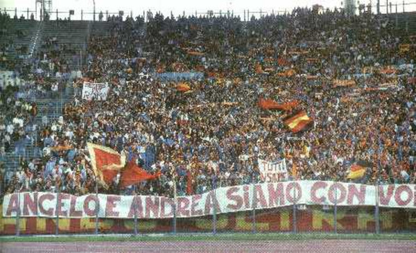 Il 21 Ottobre, in occasione di Roma– Lecce (3-0), una strana atmosfera aleggia sopra l’Olimpico. Niente striscioni in tutto lo stadio in osservanza di una presa di posizione dei “clubs giallorossi” come segno di protesta verso la decisione della Disciplinare giudicata profondamente ingiusta. Ma anche in questo caso, come sempre, la Curva Sud esprime la propria vicinanza ai due giocatori: “Angelo e Andrea siamo con voi”.