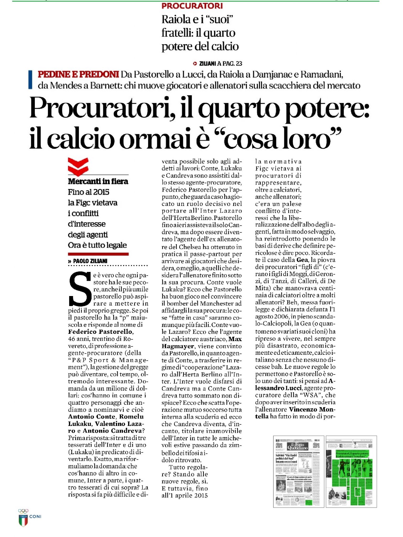 Sono passati trent’anni dalle parole di “Roccia” Burgnich, tre giorni fa il “Fatto quotidiano” titolava: “Procuratori, il quarto potere: il calcio ormai è cosa loro”.