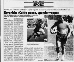L’ormai ex “Roccia”, così era soprannominato Burgnich, è ora il neo allenatore della Cremonese, e siamo alla fine dei ritiri estivi delle squadre, a ridosso dell’inizio del campionato, quello che porterà poi ai mondiali del 1990.