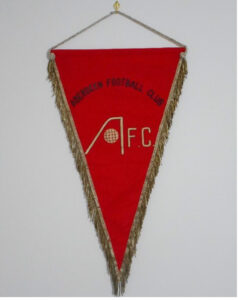 Questo “amarcord” convoglia nel gagliardetto odierno che fu realizzato e consegnato a favore della terna arbitrale austriaca in occasione della gara di ritorno della Supercoppa UEFA disputata il 20 dicembre 1983. Gagliardetto che, come riportato nella foto a seguire, non ha il piccolo stemma al di sotto della iscrizione della partita che invece compare nell’esemplare che fu consegnato a Felix Magath il capitano dell’Amburgo.