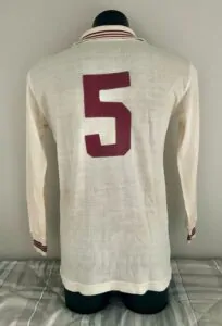 Sul retro, invece, troviamo un bellissimo numero 5 granata in similpelle. Purtroppo, al momento non sono in grado di identificare con certezza chi indossasse questo numero durante la stagione 1982/83.