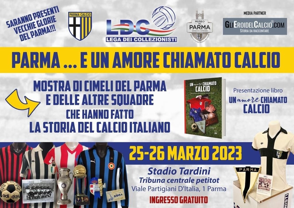 Ospitando, sabato 25 e domenica 26 marzo, l’interessante e qualificata mostra ‘Un amore chiamato calcio’. Grazie a un’iniziativa dell’associazione Parma Museum Onlus, partner della nostra società calcistica nel mantenimento e nello sviluppo del proprio Museo ‘Ernesto Ceresini’. ‘Un amore chiamato calcio’ è curata dalla Lega dei Collezionisti, a cui Parma Museum è affiliata, riconosciuta dal Museo del Calcio della Figc di Coverciano, con cui collabora.