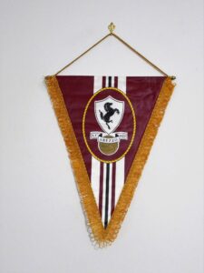 Negli anni settanta i gagliardetti dell’Arezzo riportavano, oltre alla colorazione amaranto, lo stemma del cavallino all’interno di uno scudo, per l’araldica classificato come scudo svizzero.