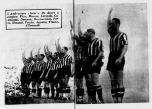Come noto, il due volte campione del mondo Meazza ebbe però la sfortuna di vincere ben poco in Italia, visto che all’inizio degli anni Trenta la sua Ambrosiana-Inter trovò sulla propria strada la corazzata bianconera della Juventus cinque volte campione d’Italia (1930/1935). Guardiamo ad esempio alla stagione 1933/1934: i nerazzurri di Meazza, Serantoni e Levratto, che avevano esordito asfaltando il malcapitato Casale con ben 9 reti nella partita d’esordio, raggiunsero la vetta già alla quarta giornata, e mantennero il primato per la maggior parte del campionato. Complici anche due evitabili sconfitte, a marzo l’Ambrosiana-Inter venne quindi superata da quella Juventus che pure aveva sconfitto nel primo scontro diretto: alla fine i bianconeri, trascinati dalle 31 reti del diciannovenne Felice Borel II, scucirono dal petto dei nerazzurri l’agognato scudetto.