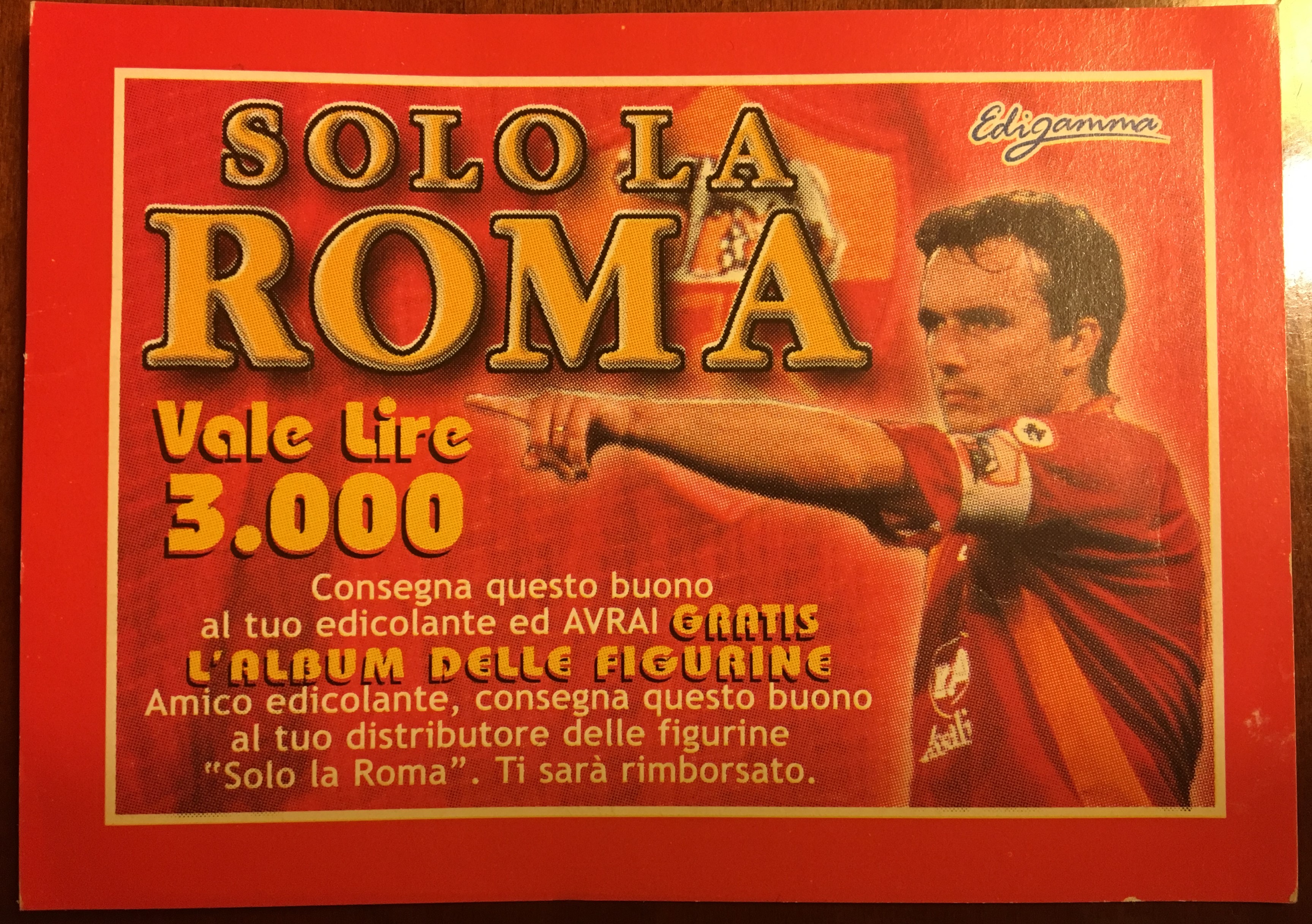 Per la stagione 1997/98 è la società editrice Edigamma Srl, anch’essa di Roma, a tentare l’avventura dell’album di figurine dedicato, il titolo è un urlo: “Solo la Roma”.