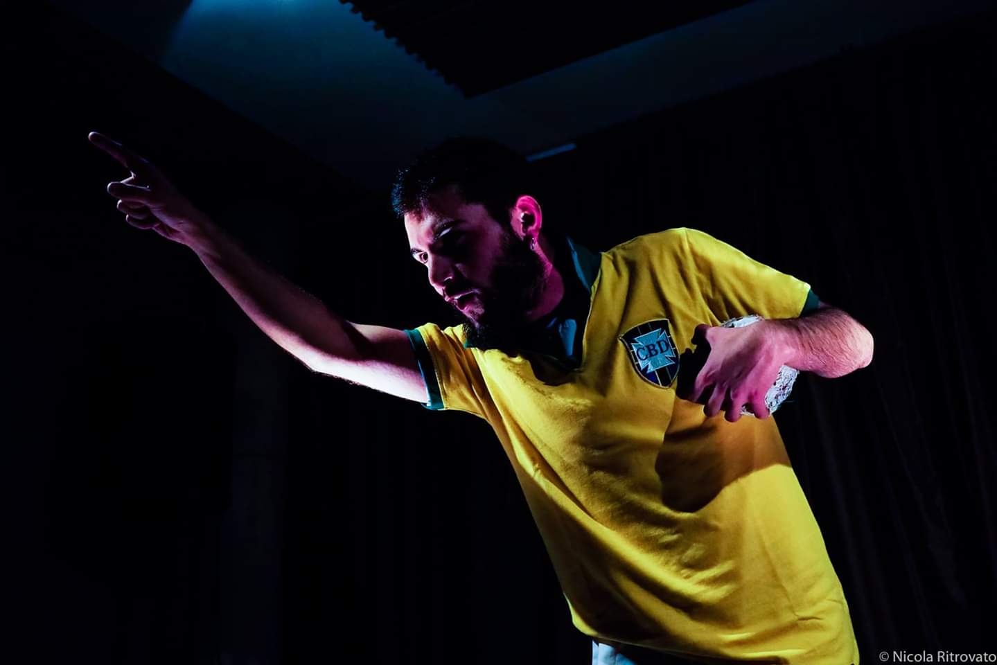 Contini, il giovane artista da noi raggiunto per l’occasione, ci confessa che il calcio è abbastanza lontano dal suo stile di vita, e ci racconta come questo personaggio sia invece entrato dentro di lui… “Tutto nasce qualche mese fa”, ci dice l’artista, “quando il libraio con il quale collaboro mi ha sottoposto una “Graphic novel” dal titolo GARRINCHA – L`ANGELO DALLE GAMBE STORTE. Mi ha chiesto poi se me la sentivo di fare uno spettacolo su di lui. Credetemi, io non sapevo nemmeno chi fosse Garrincha. Ho effettuato allora delle ricerche, degli studi, per approfondire la sua vita. Mi sono documentato molto e la ricerca più proseguiva più diventava interessante. Non è una storia banale, ma riguarda un uomo che nasce in una zona povera del Brasile, a Pau Grande, colpito da poliomielite, che ha una gamba più corta dell’altra che si ritrova ad essere la più grande ala destra dell’epoca e forse di tutti i tempi. Una storia affascinante che narra di un “passerotto”, detto appunto “Garrincha”, nome con cui in Brasile si indica un piccolo uccello, che vola così in alto dove nessuno era arrivato prima. Una storia rovinata e distrutta dai vizi: alcool, fumo e donne. Vizi che lo riportano al punto di partenza, alla miseria e all’indigenza cui non era più abituato. La sua storia contiene comunque un messaggio di speranza: se Manoel Francisco dos Santos, meglio noto come Garrincha, con quelle difficoltà fisiche è arrivato sul tetto del mondo, chiunque può raggiungere qualsiasi traguardo.”
