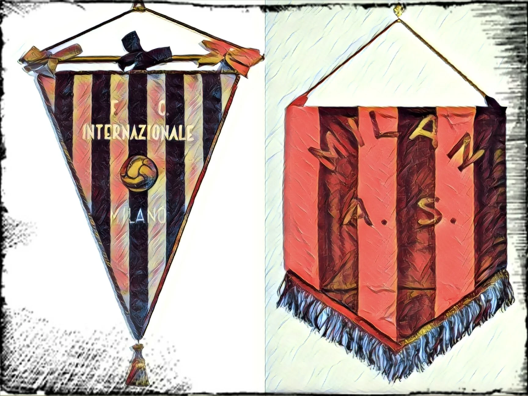 Possiamo anche raccontare il Derby di Milano con alcuni gagliardetti della fantastica collezione di Marco Cianfanelli, che ringraziamo come al solito per la sua disponibilità e competenza che mette al servizio di tutti noi.