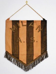 MILAN: Gagliardetto scambiato tra capitani in occasione dell’amichevole Hajduk Spalato – Milan disputata nel 1938. In quell’anno e poi ancora per pochi il Milan aveva assunto la denominazione A.S. Milan