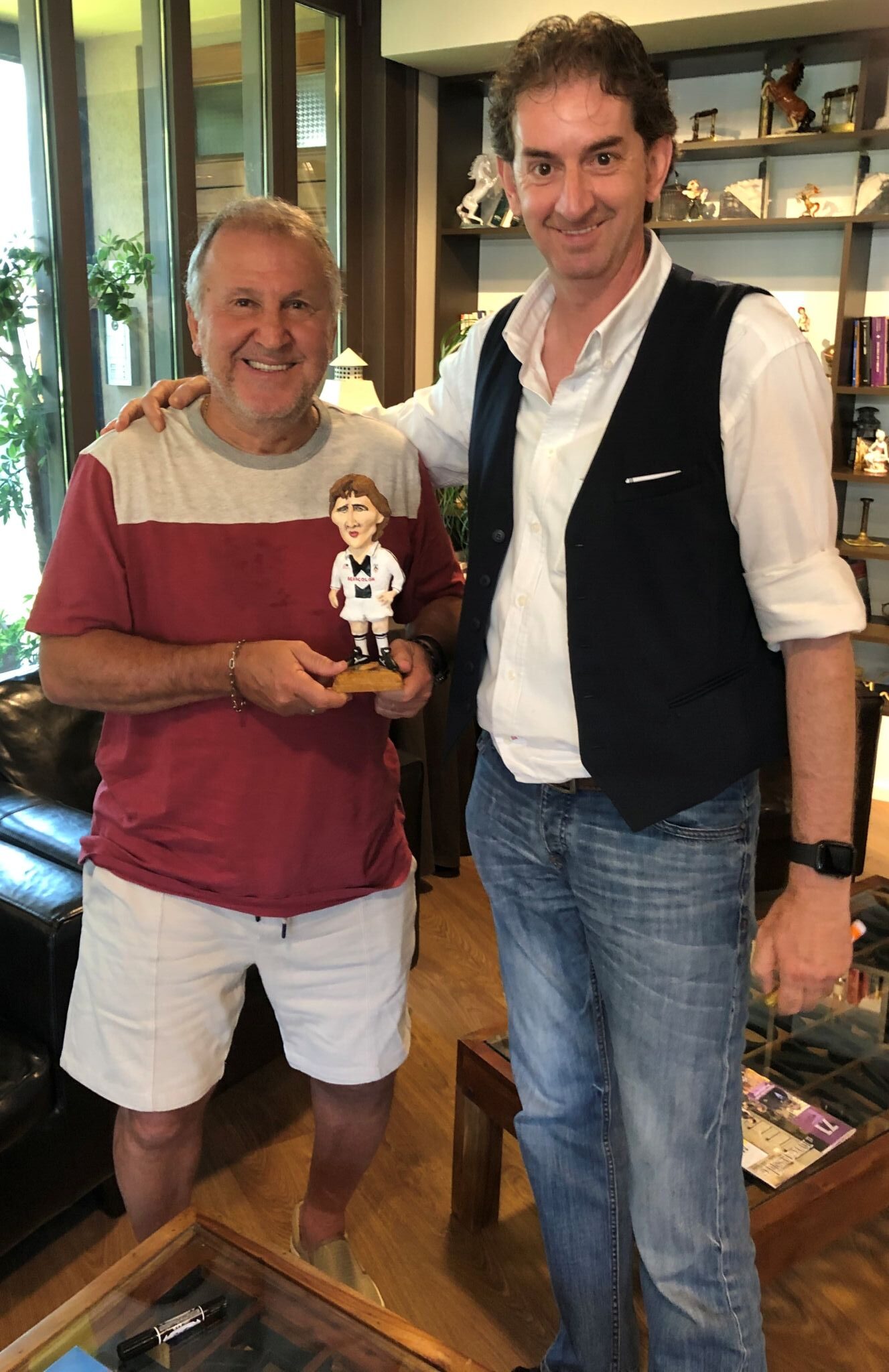 Auguri a Zico con alcuni “pezzi” della collezione di Antonello Schiavello