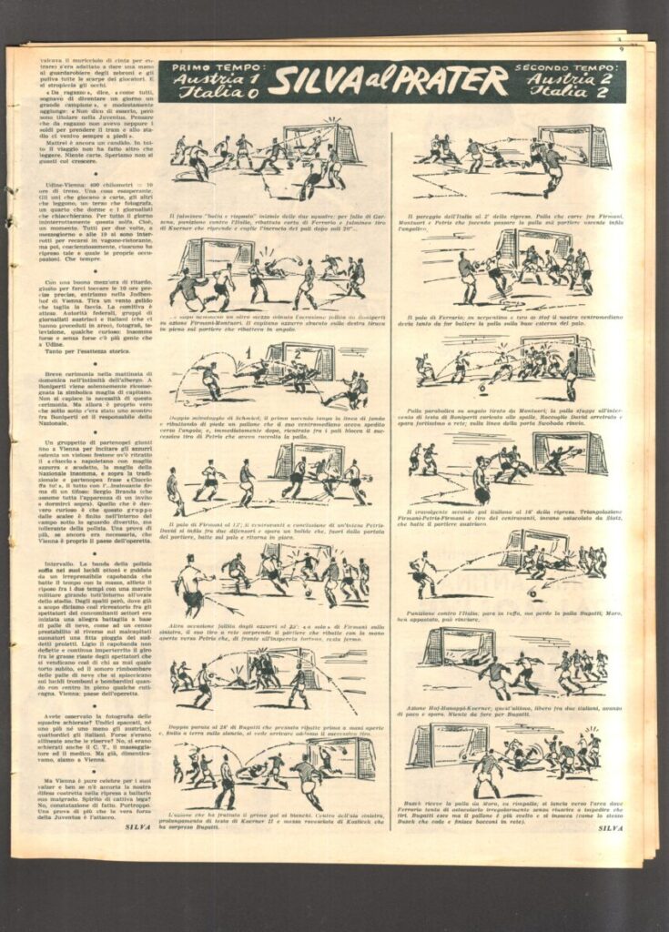 “Il Calcio e il Ciclismo Illustrato” ben dettaglia quella partita titolando in prima pagina “Tre minuti fatali” quelli che appunto costarono all’Italia una immeritata sconfitta per 3-2