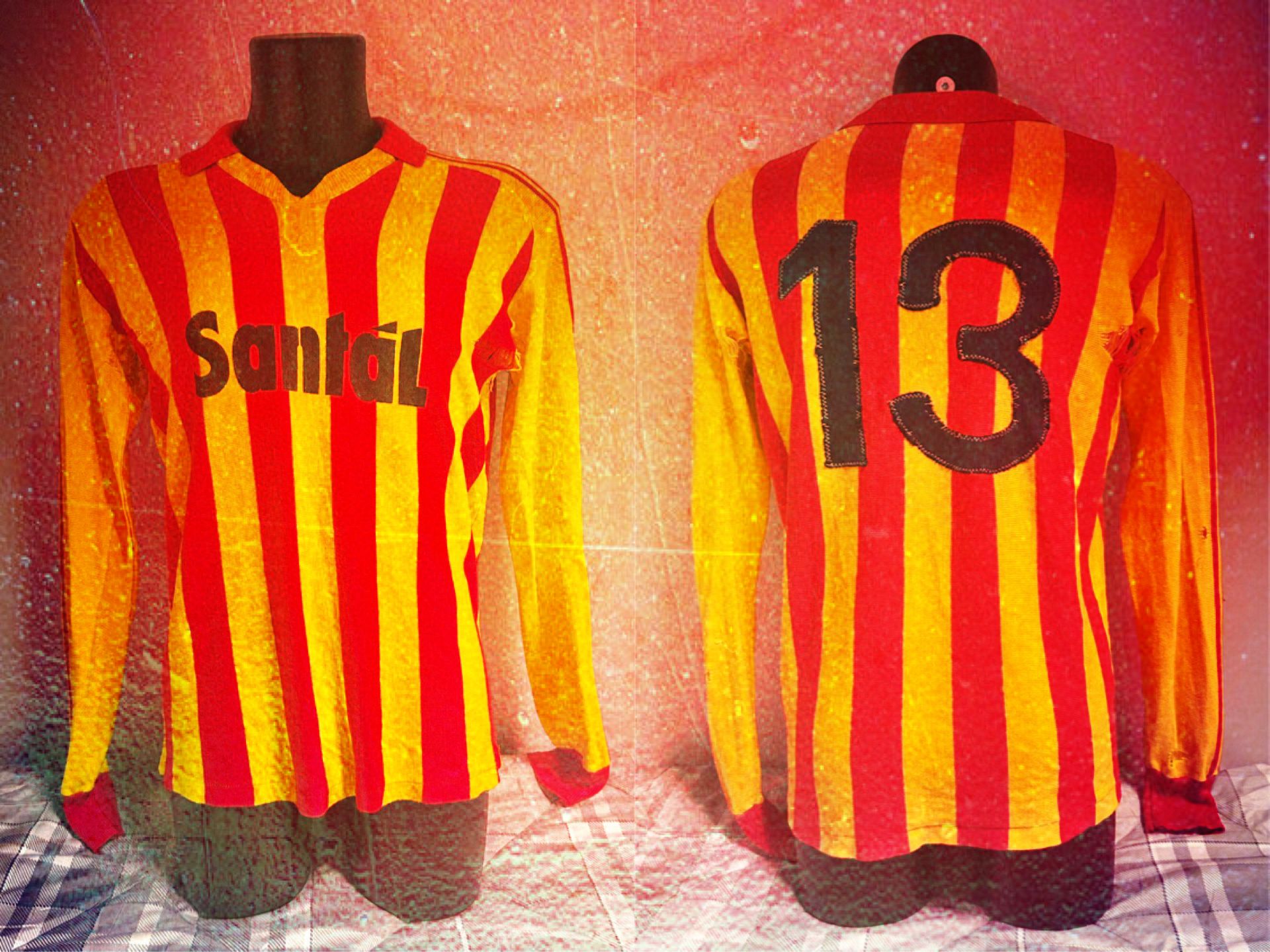 Questa maglia appartiene a una delle tre stagioni “sponsorizzate” (le altre due con lo sponsor sono la 1983/84 e la 1984/85 con sponsor Wierer, marca di tegole). È davvero stupenda, sebbene sia arrivata ai giorni nostri con qualche largo strappo nella parte finale delle maniche. La maglia è a strisce verticali gialle e rosse. La parte superiore del colletto è rossa, mentre la base è gialla. Anche i polsini sono rossi. All’altezza delle spalle, invece, troviamo cucite delle strisce orizzontali gialle e rosse molto simile a quelle delle maglie prodotte da Adidas.