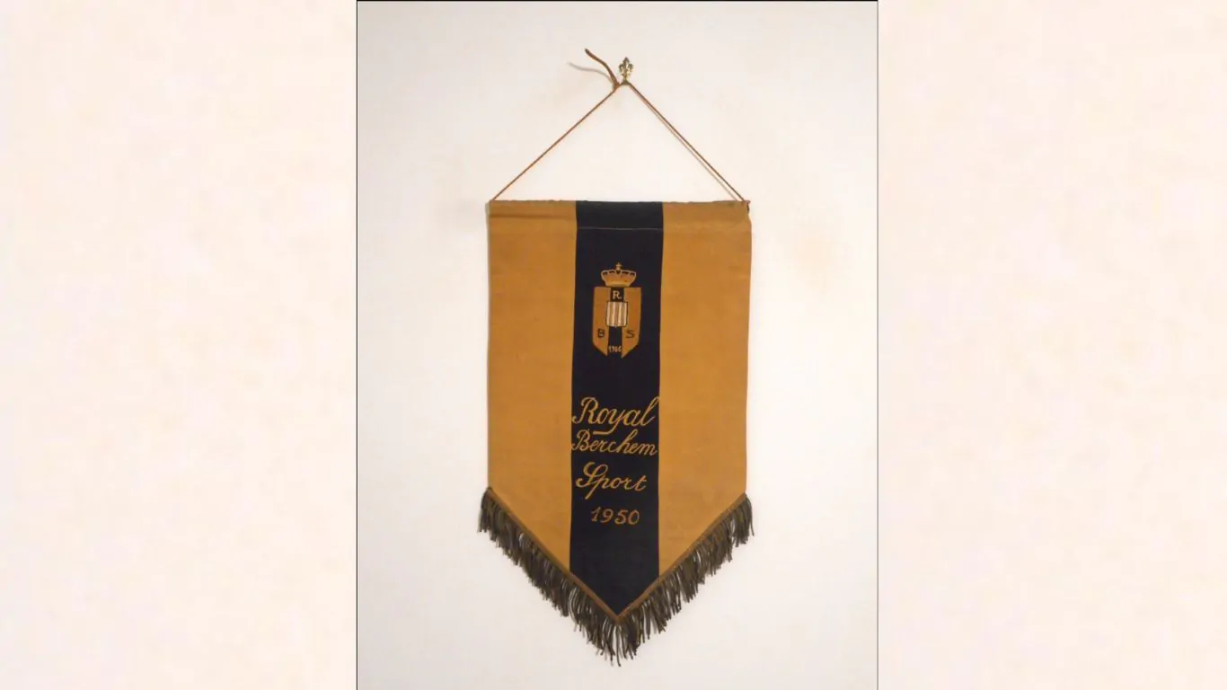 Questo gagliardetto utilizato nel 1950 ci porta indietro a quello che fu il periodo d’oro del Berchem con una presenza fissa nella massima serie nazionale. L’esemplare venne con ogni probabilità scambiato nel corso di una gara amichevole contro gli olandesi del PSV Eindhoven. All’epoca, infatti, non era di prassi lo scambio di gagliardetti tra squadre belghe.