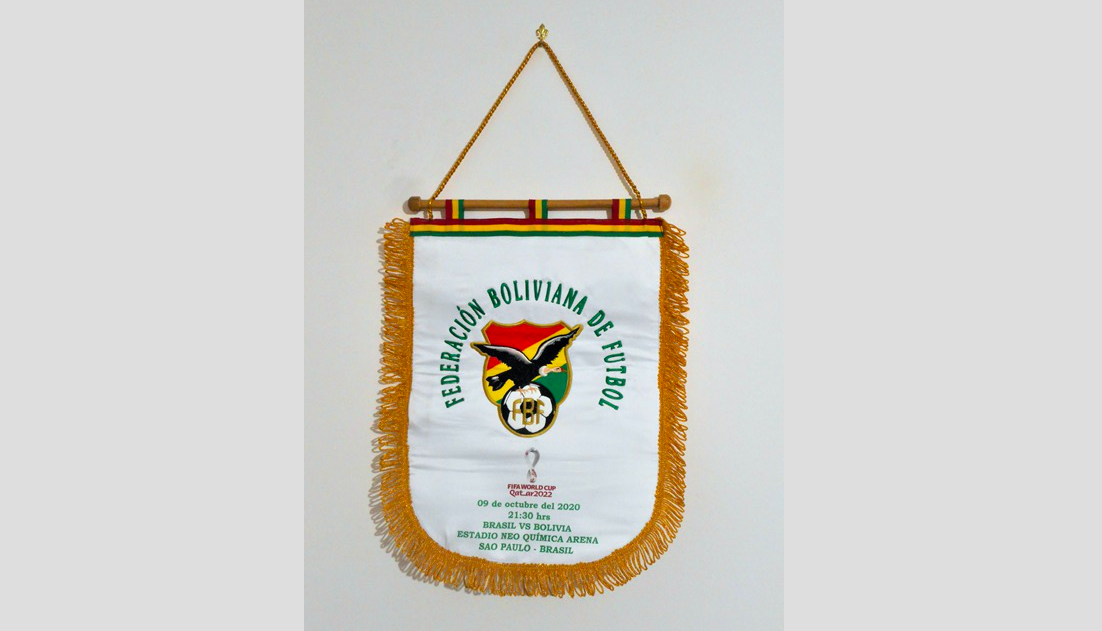 Il gagliardetto in esame è quello consegnato al capitano del Brasile Casemiro dal capitano avversario e riporta, sulla fronte, il ricamo dello stemma della federazione boliviana con la caratteristica aquila. Le scritte sottostanti allo stemma sono interamente stampate, mentre il retro del gagliardetto riporta il tricolore boliviano.