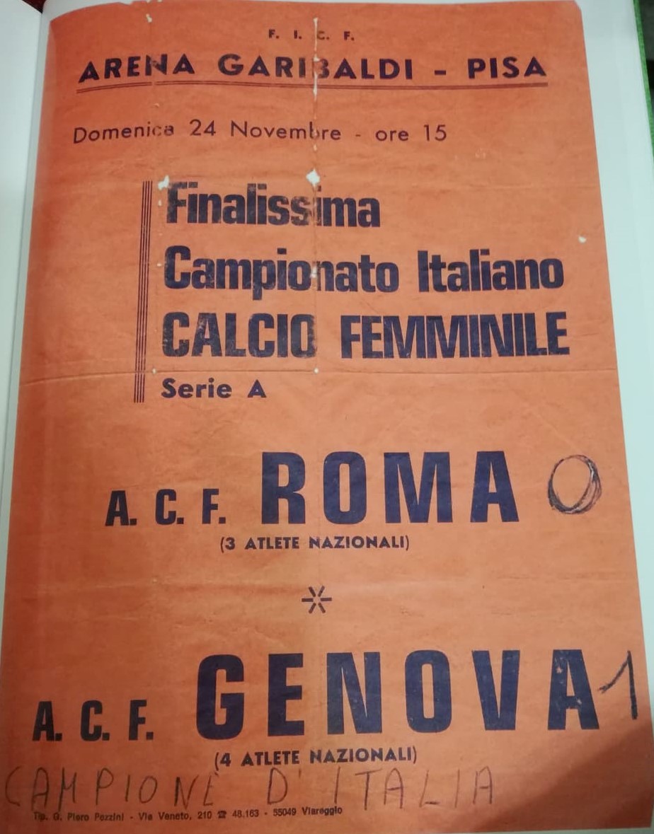 “Era un periodo ancora ibrido e l’idea di creare una nazionale portò un maggior interesse verso il nostro movimento. Ricordo che c’era molto entusiasmo e tante aspettative per questo debutto contro la Cecoslovacchia e sugli spalti c’era un bel pubblico. Per noi la cosa più importante, comunque, era giocare e divertirci. Poco dopo nacque la prima Federazione e si organizzò il primo campionato ufficiale. In finale arrivammo noi e la Roma. Si giocò il 24 novembre all’Arena Garibaldi di Pisa. Vincemmo per 1-0 col gol di Albertina Rosasco e così diventammo la prima squadra campione d’Italia.”