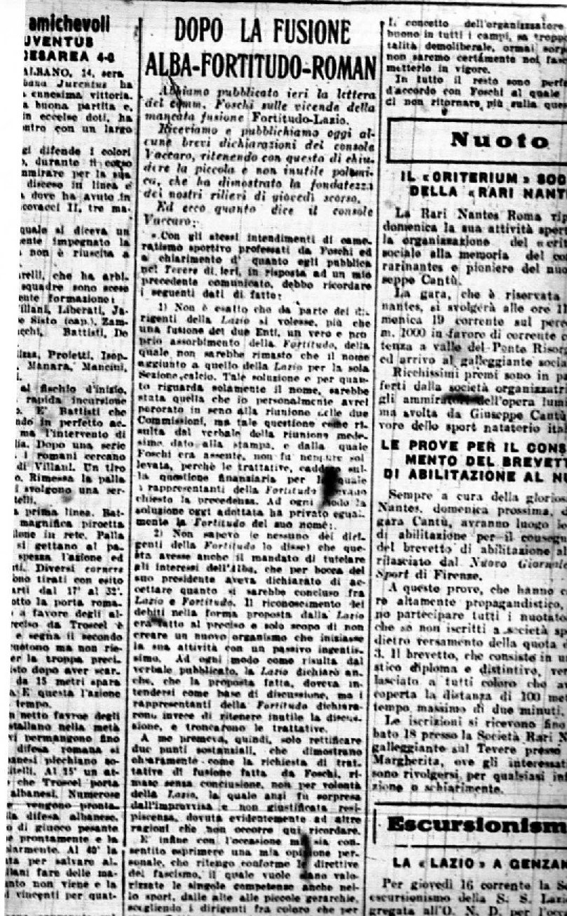 Nei giorni immediatamente successivi il presidente biancoceleste, Giorgio Vaccaro attaccò duramente il neo presidente romanista, avvalorando la versione dei fatti pro domo sua: era stata la Fortitudo-Pro Roma, e non la Lazio, a far fallire l’operazione. Il ravvedimento non era da rintracciare nella compagine laziale, in quanto il riconoscimento dei debiti nella forma proposta dalla Lazio era stato posto sul piatto “al preciso e solo scopo di non creare un nuovo organismo che iniziasse la sua attività con un passivo ingentissimo”.  Nell’intervista fiume del presidente biancoceleste a “Il Tevere” del 15 giugno 1927 Vaccaro ribadisce appunto che la fusione delle formazioni capitoline “rimase senza conclusione non per volontà della Lazio” e che “la questione del nome (come del simbolo e dei colori, ndr) non fu neppure levata, perché le trattative caddero sulla questione finanziaria per la quale i dirigenti della Fortitudo avevano chiesto la precedenza.”.